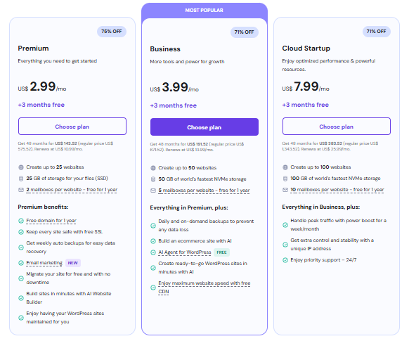 👉 If you’re a beginner, the Premium Plan is a great starting point. Perfect for blogs, small businesses, or portfolios.